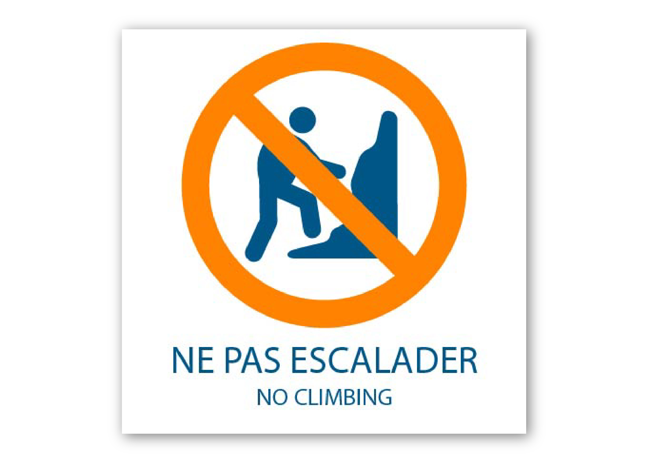 Panneau « Ne pas escalader », indiquant l’interdiction de grimper ou d’escalader dans la zone concernée.