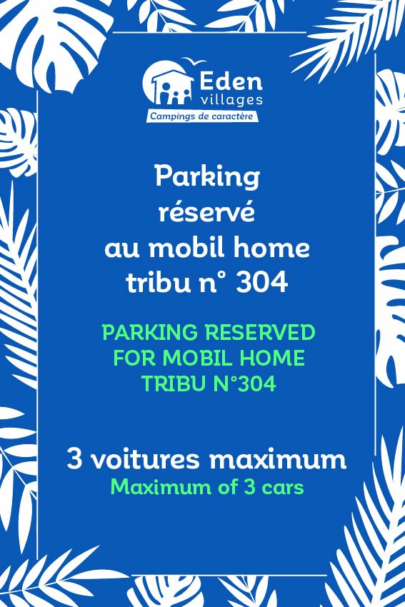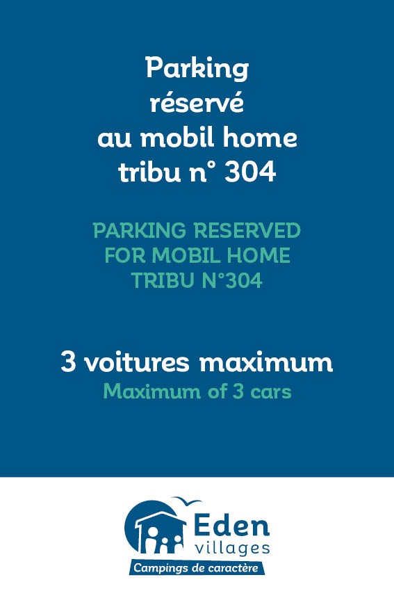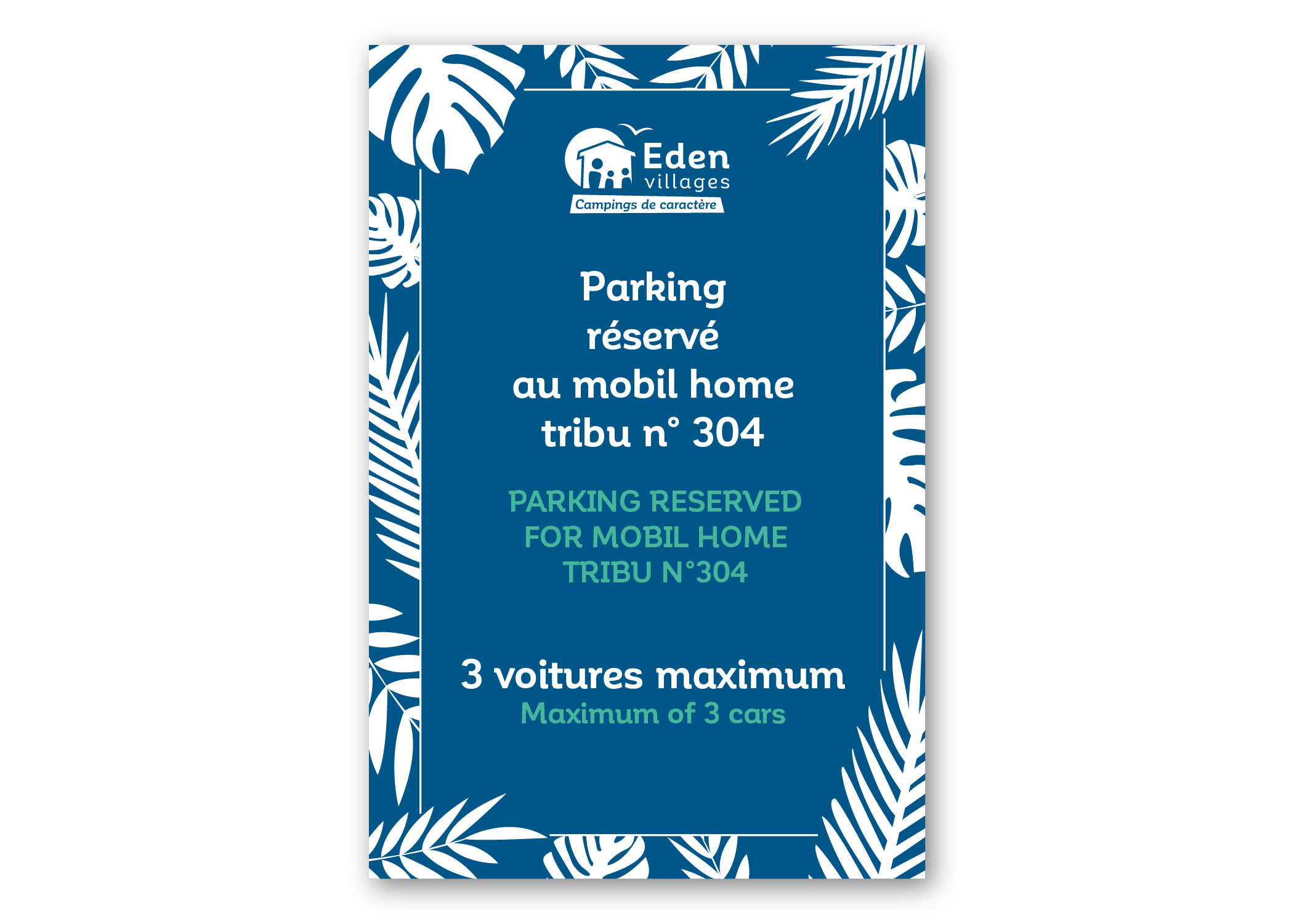 Panneau « Parking Tribu », précisant un parking réservé avec une limitation à 3 voitures maximum.