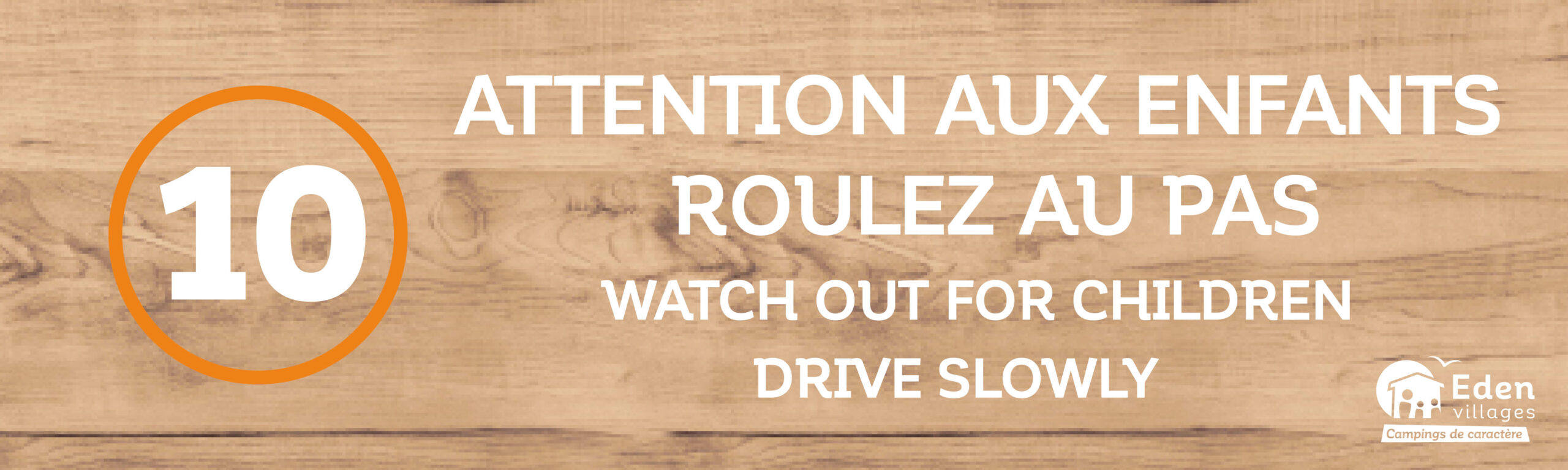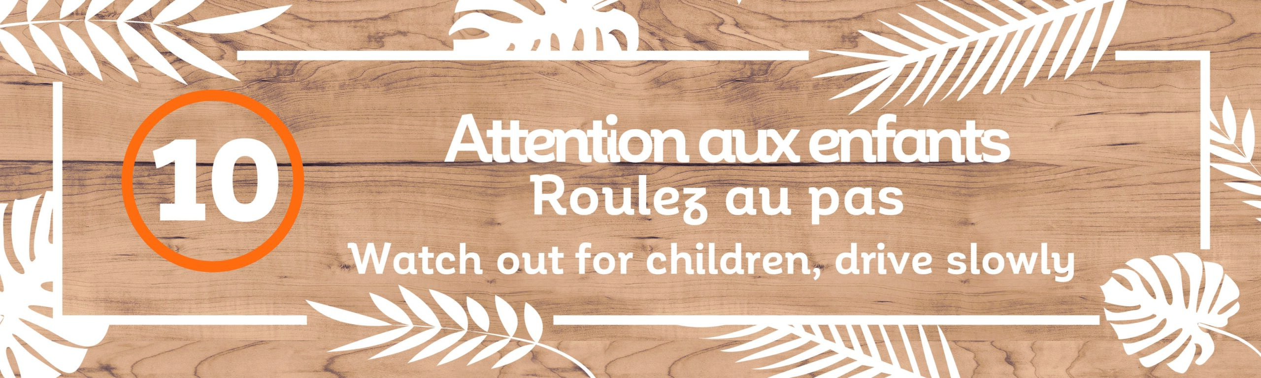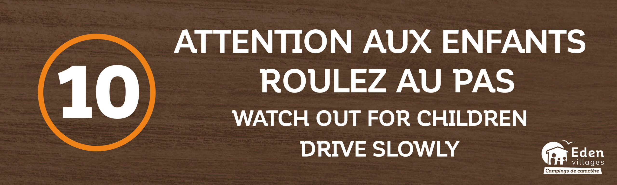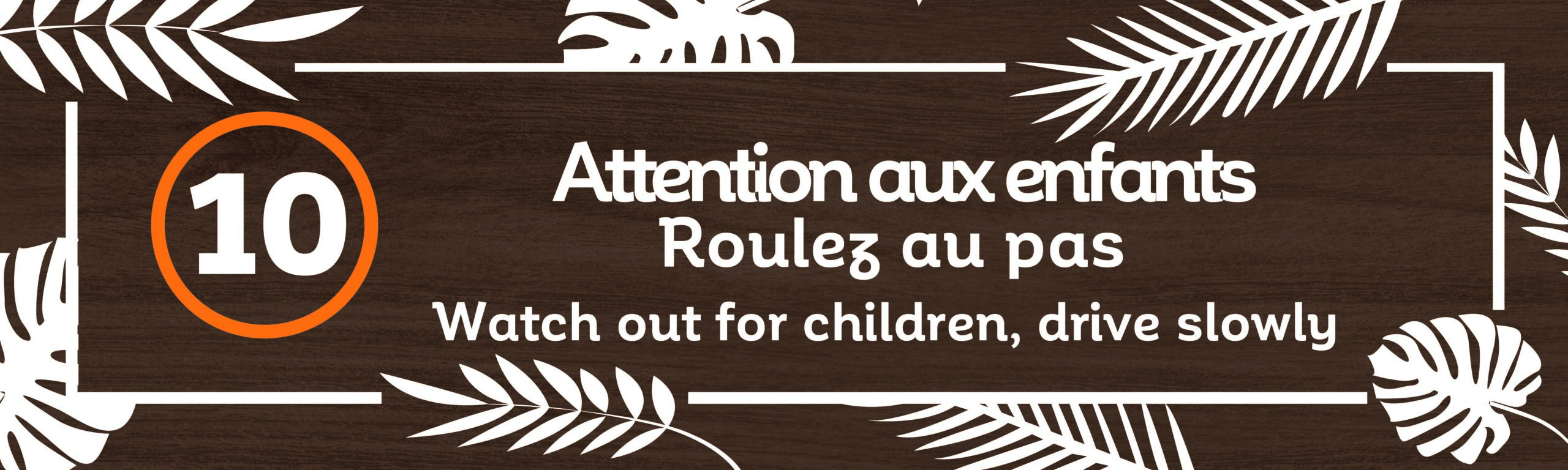 Panneau « Attention aux enfants, Roulez au pas » avec une limitation de vitesse à 10 km/h.