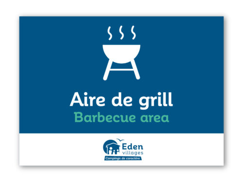 40x30 cm Panneau « Aire de grill » Disponible en trois coloris : bleu, bois clair et bois foncé, avec une déclinaison fleurs pour chaque version.
