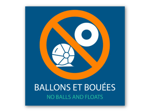20x20 cm Panneau « Interdiction aux ballons et bouées », signalant l’interdiction aux ballons et bouées dans la zone concernée. Disponible en deux coloris : bleu et blanc.