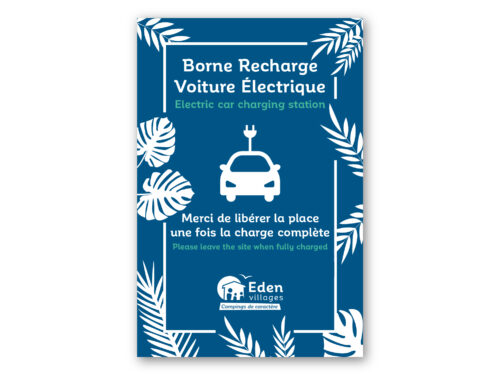 30x45 cm Panneau « Borne recharge voiture électrique », indiquant la zone de recharge pour véhicules électriques. Disponible en trois coloris : bleu, bois clair et bois foncé, avec une déclinaison fleurs pour chaque version.