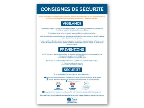 42x60 cm Panneau « Consigné de sécurité », rappelant les règles de vigilance, de prévention et de sécurité autour de la piscine. Disponible en bleu avec une déclinaison fleurs et blanc.