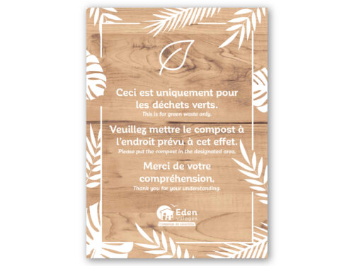 20x30 cm Panneau « Déchets verts », rappelant que la zone concernée est réservée exclusivement aux déchets végétaux. Disponible en trois coloris : bleu, bois clair et bois foncé, avec une déclinaison fleurs pour chaque version.